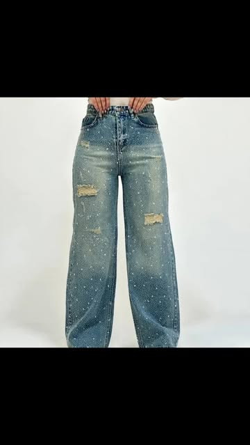 شلوار لی ترک مدل نیم بگ نگین دار